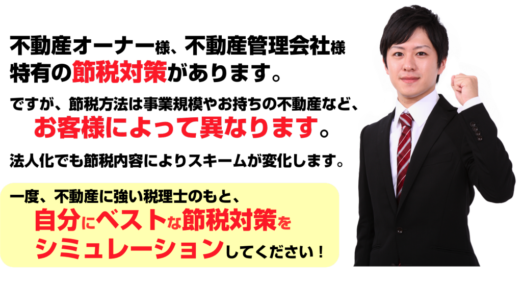 当事務所では、不動産の節税に強い税理士のもと、お客様ごとに最適なアドバイスを行なわせていただきます。お気軽に、一度ご相談にいらしてください。